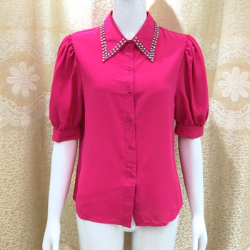 2023 nueva camisa casual de algodón 100% con volantes de diamantes sólidos