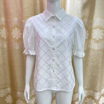 2023 Áo sơ mi cotton 100% ruffles kim cương rắn thường ngày mới